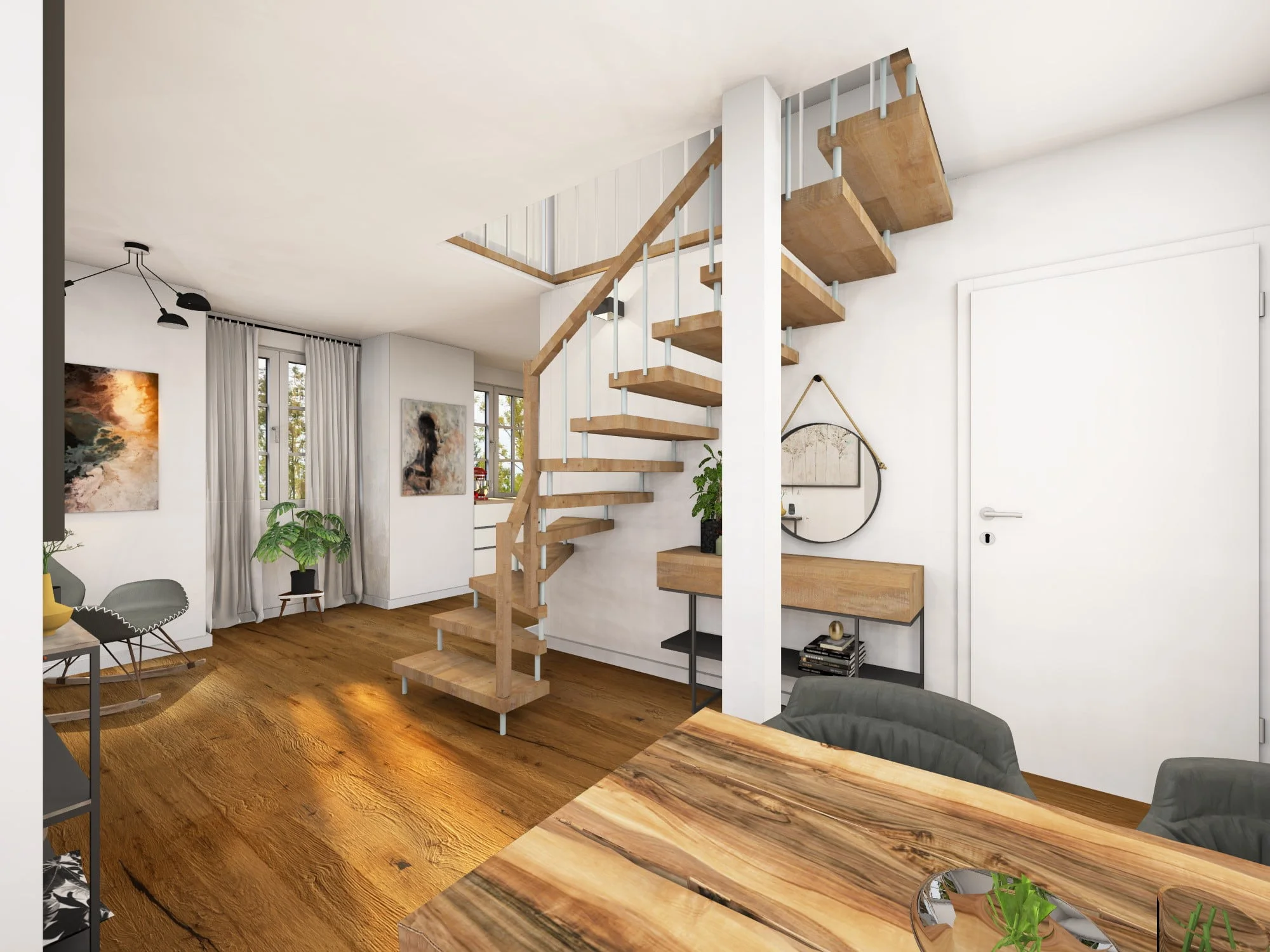 Diese Maisonettewohnung befindet sich in einem denkmalgeschützten Gebäude in München-Pasing. Die Wohnung wurde im Rohbauzustand übernommen und bot damit die Möglichkeit für einen individuellen Innenausbau. Durch präzise Planung und realistische Visualisierungen konnten die zukünftigen Wohnräume bereits im Vorfeld klar dargestellt und optimal gestaltet werden.